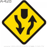 , alerta o condutor para reduzir a velocidade e redobrar a atenção, pois o veículo se aproxima de trecho com: